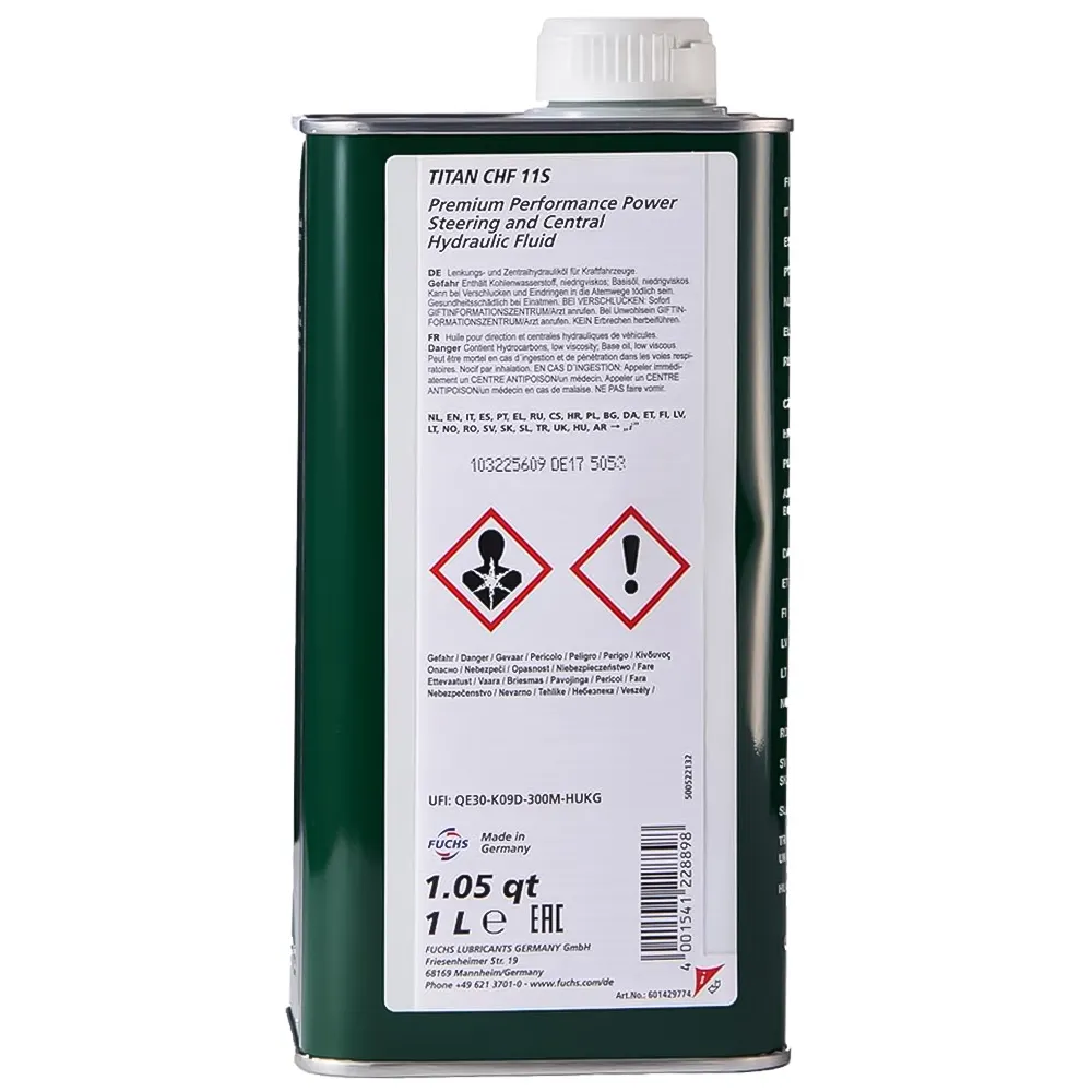 روغن هیدرولیک فرمان CHF 11S یک نوع روغن خاص برای سیستمهای هیدرولیک و فرمان خودروها است. روغن هیدرولیک فرمان Fuchs Titan CHF 11S یک سیال هیدرولیکی فوقپیشرفته بر پایه ترکیبات سنتتیک است که به طور ویژه برای سیستمهای فرمان هیدرولیک و هیدرولیک مرکزی خودروهای مدرن طراحی شده است. این محصول که ساخت آلمان و تولید برند معتبر Fuchs Schmierstoffe GmbH است، عملکردی پایدار و دقیق حتی در شرایط سخت دمایی و کاری ارائه میدهد و انتخابی ایدهآل برای مالکانی است که به عمر طولانی و کارایی بینقص سیستم فرمان و هیدرولیک خود اهمیت میدهند.