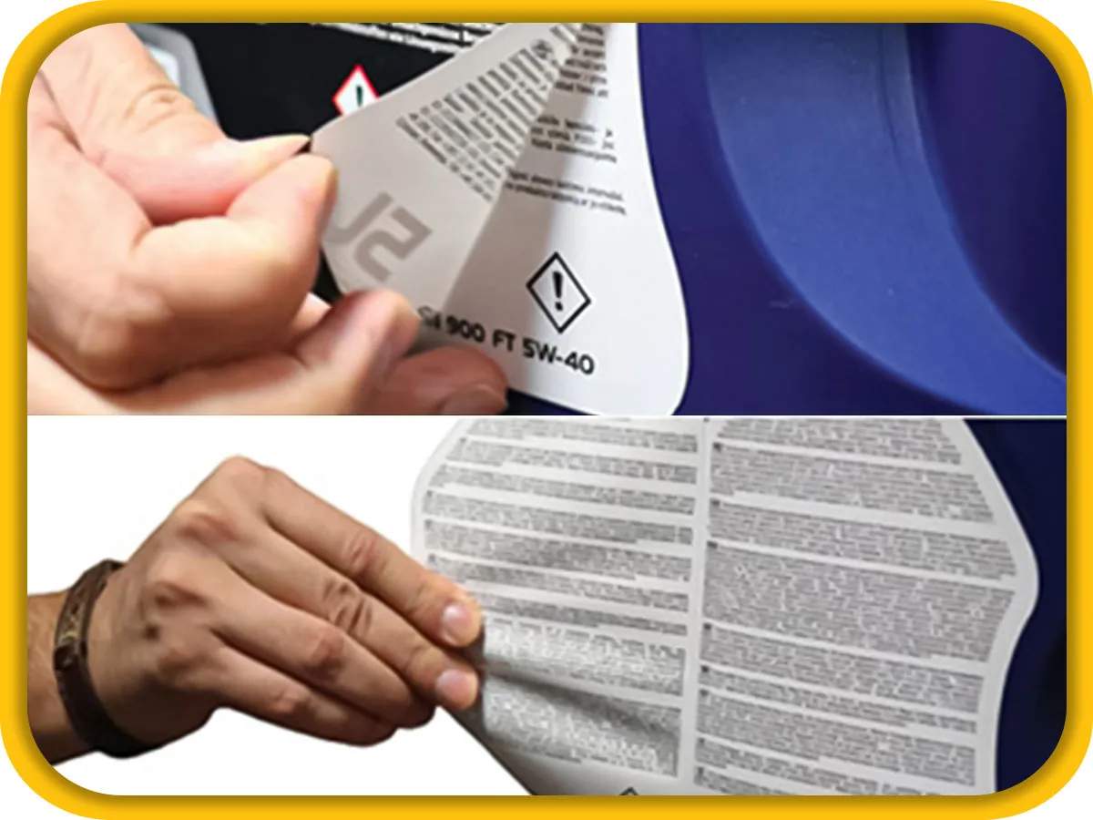 به کیفیت برچسب و بستهبندی توجه کنید. زیرا برچسبهای تقلبی معمولاً کیفیت پایینی دارند و ممکن است رنگها محو شده یا غیر واضح باشند. روغن موتور های اصلی (برند های خارجی) اکثراً دارای دفترچه ای در برچسب پشتی خود دارند که در آن مشخصات روغن ذکر شده است.