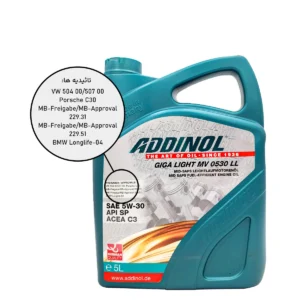 روغن موتور ADDINOL Giga Light MV 0530 LL یک روغن موتور با عملکرد بالا و مصرف سوخت اقتصادی در کلاس SAE 5W-30 است. ترکیب ایدهآل فناوری سینتتیک و افزودنیهای نوآورانه، عملکرد فوقالعادهای را با ویژگیهای Mid SAPS و Longlife III تضمین میکند.